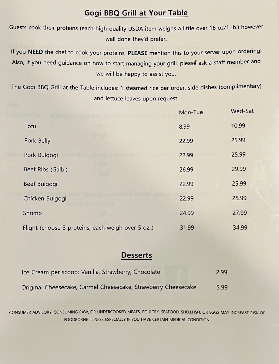 Gogi BBQ House Menu